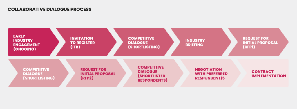 Collaborative dialogue allows the purchase to purchaser to understand proposed responses better, reduce technical and cost risk and seek clarification and further detail without the constraints of conventional tendering processes, including which response/s could best achieve the required outcome.