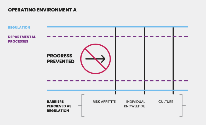 Many barriers link back to the regulatory operating environment that public servants are operating within. For example: